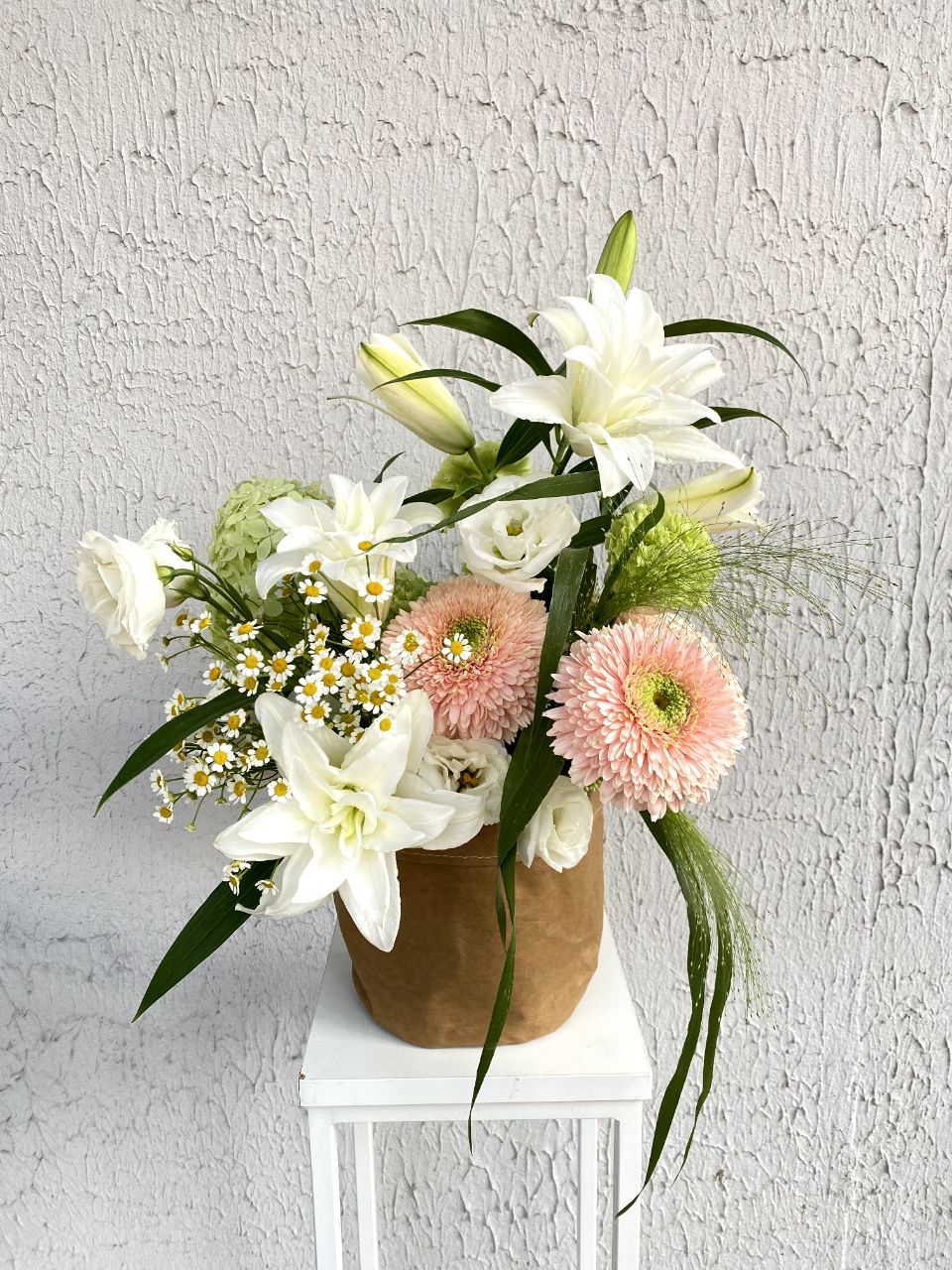 Композциия из лилии, герберы и гортензии. Розовая композиция - это праздник элегантности и романтики. Она привлекает взгляды и создает идеальное настроение, наполняя воздух ароматом любви и нежности, а также идеально подойдет для важных событий: розовые цветы могут быть отличным выбором для празднования важных событий, таких как дни рождения, юбилеи, свадьбы или годовщины. Они помогут создать атмосферу радости, торжества и прекрасных эмоций.
