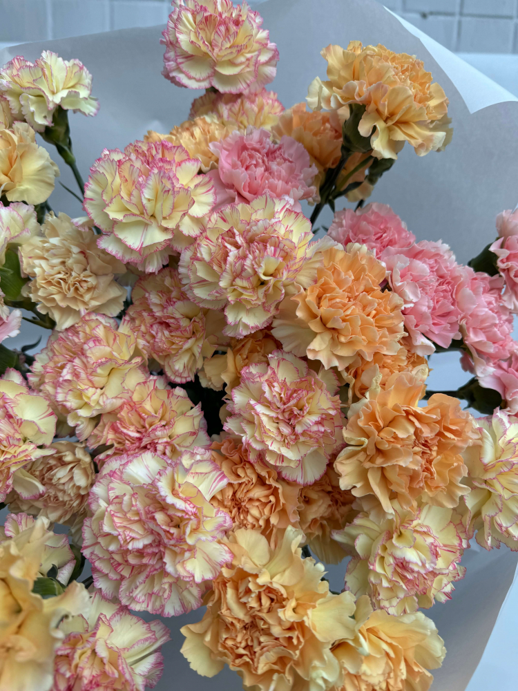 Состав букета на фото: диантусы трех сортов. Состав букета может меняться в зависимости от сезонности цветов.