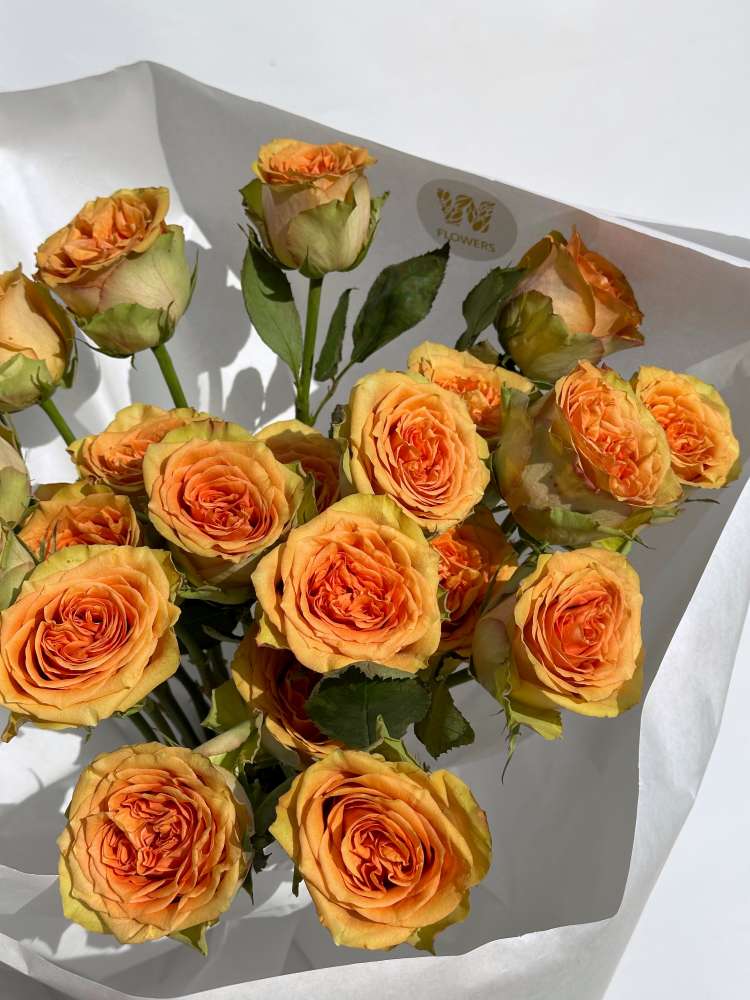 Монобукет из роз сорта тропик версила. Букет из кустовых роз сорта тропик версила - это изысканная картина нежности и элегантности. Эти розы буквально пропитаны чистотой и привлекательностью, создавая атмосферу безмятежности и вдохновения.
