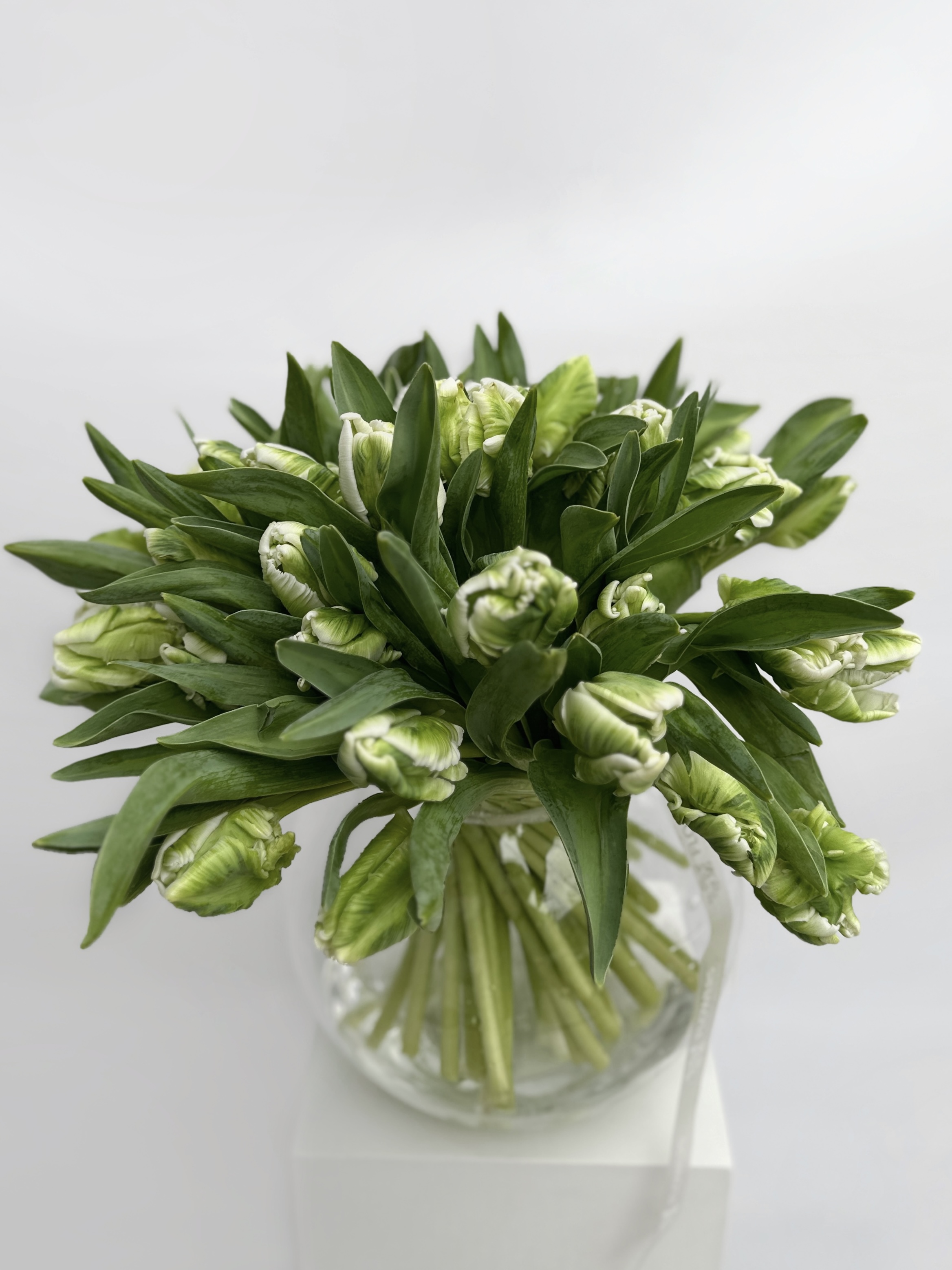 Букет из 47 тюльпанов супер пэррот идеально подходит для поднятия настроения и придания нежного волшебства любому моменту. Тюльпаны этого сорта имеют самый необычный и экзотический вид: лепестки их имеют глубоко изрезанные края, иногда волнистые, чем напоминают растрепанные птичьи перья. Широко раскрытый цветок может достигать в диаметре 20 см.