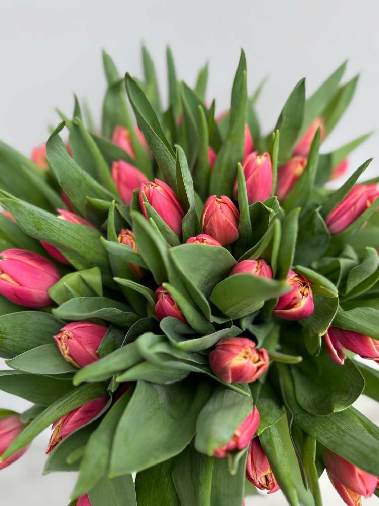 Букет из 49 пионовидных тюльпанов ду оранж принцесс идеально подходит для поднятия настроения и придания нежного волшебства любому моменту.