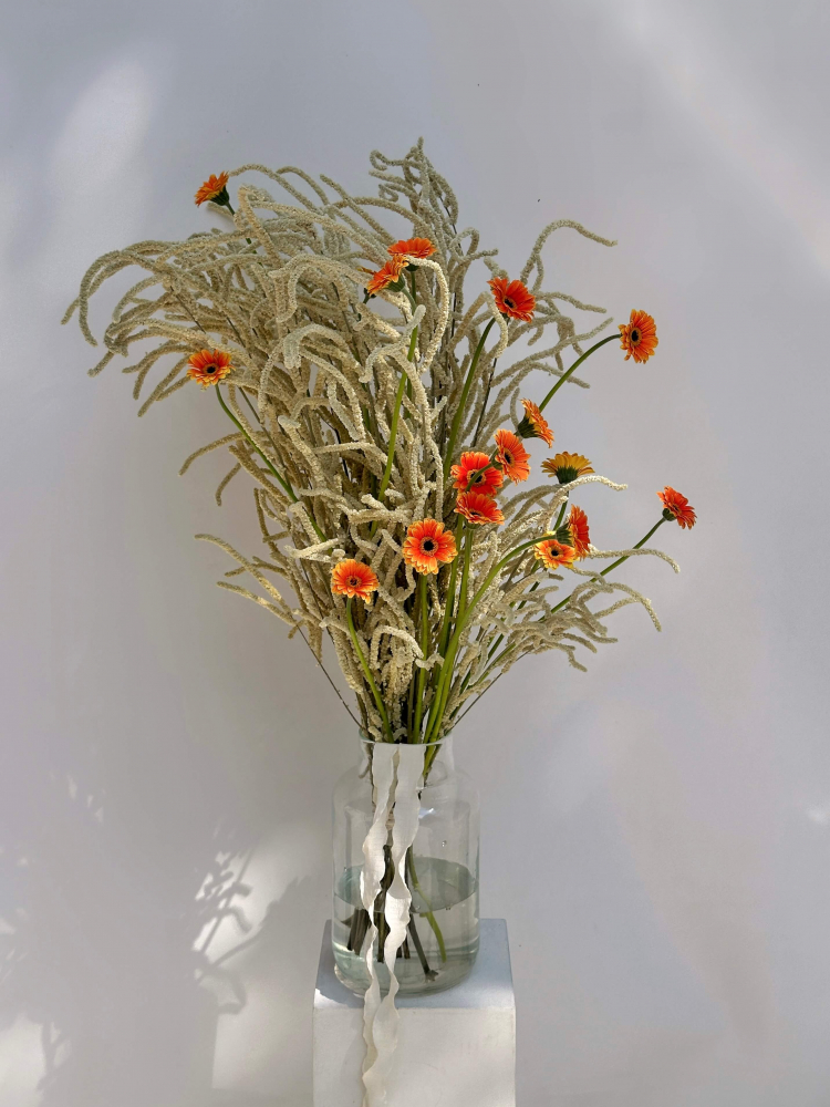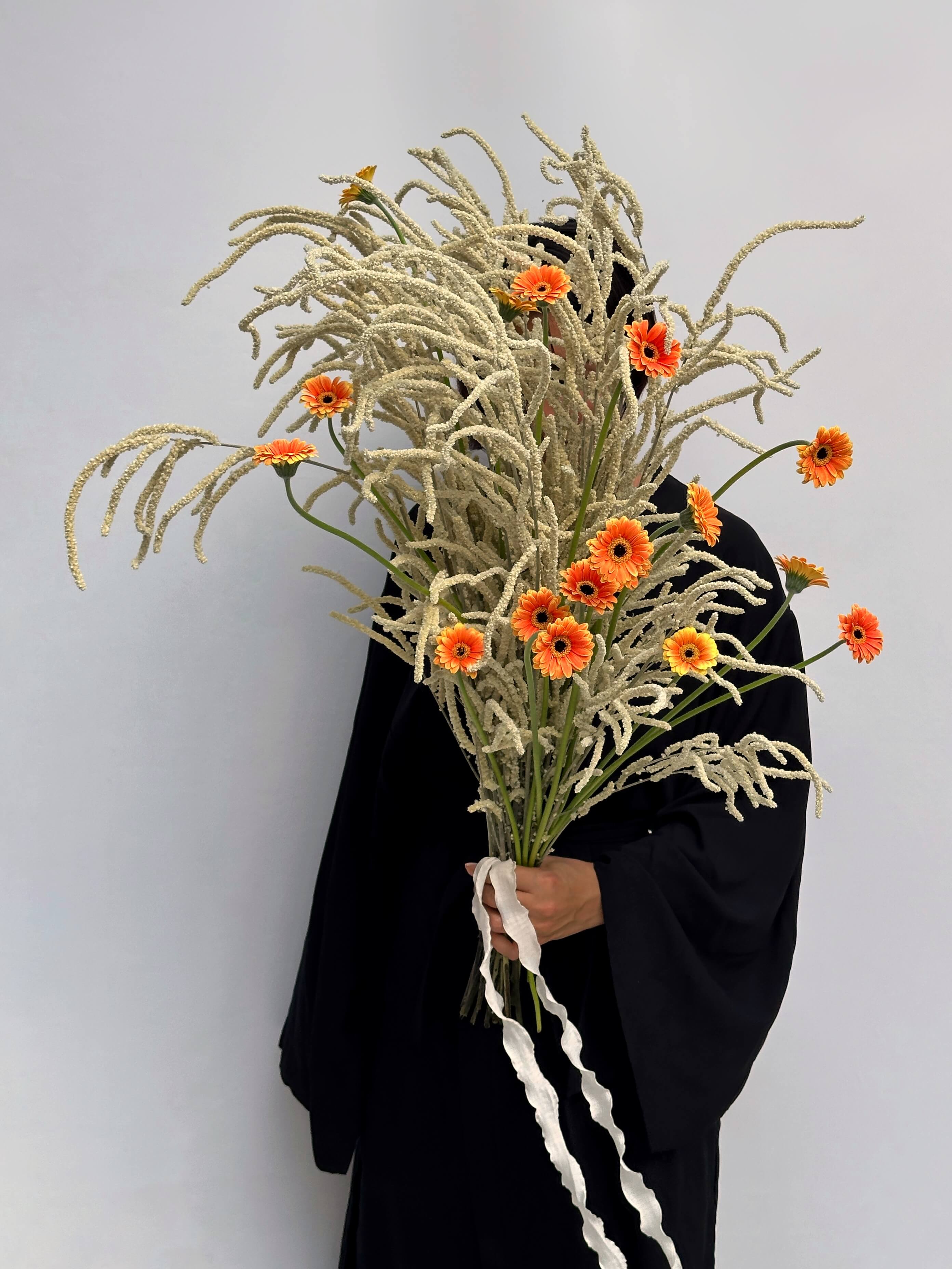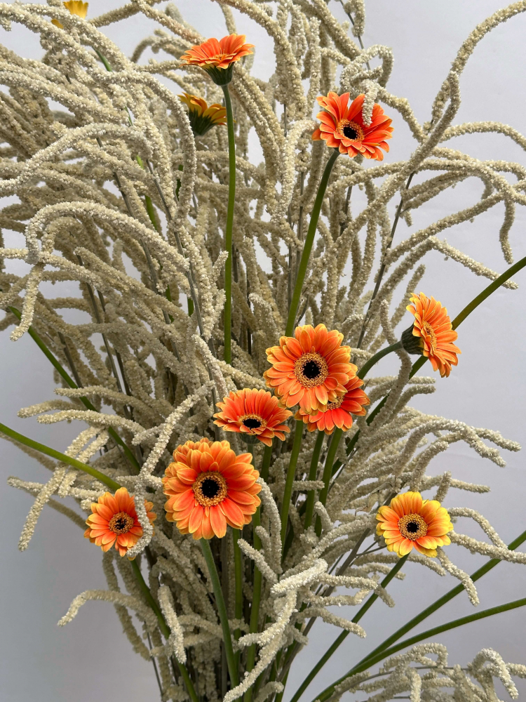 Состав букета на фото: Минигербера пикколини, Амарантус Ярминг Десерт. Состав букета может меняться в зависимости от сезонности цветов.