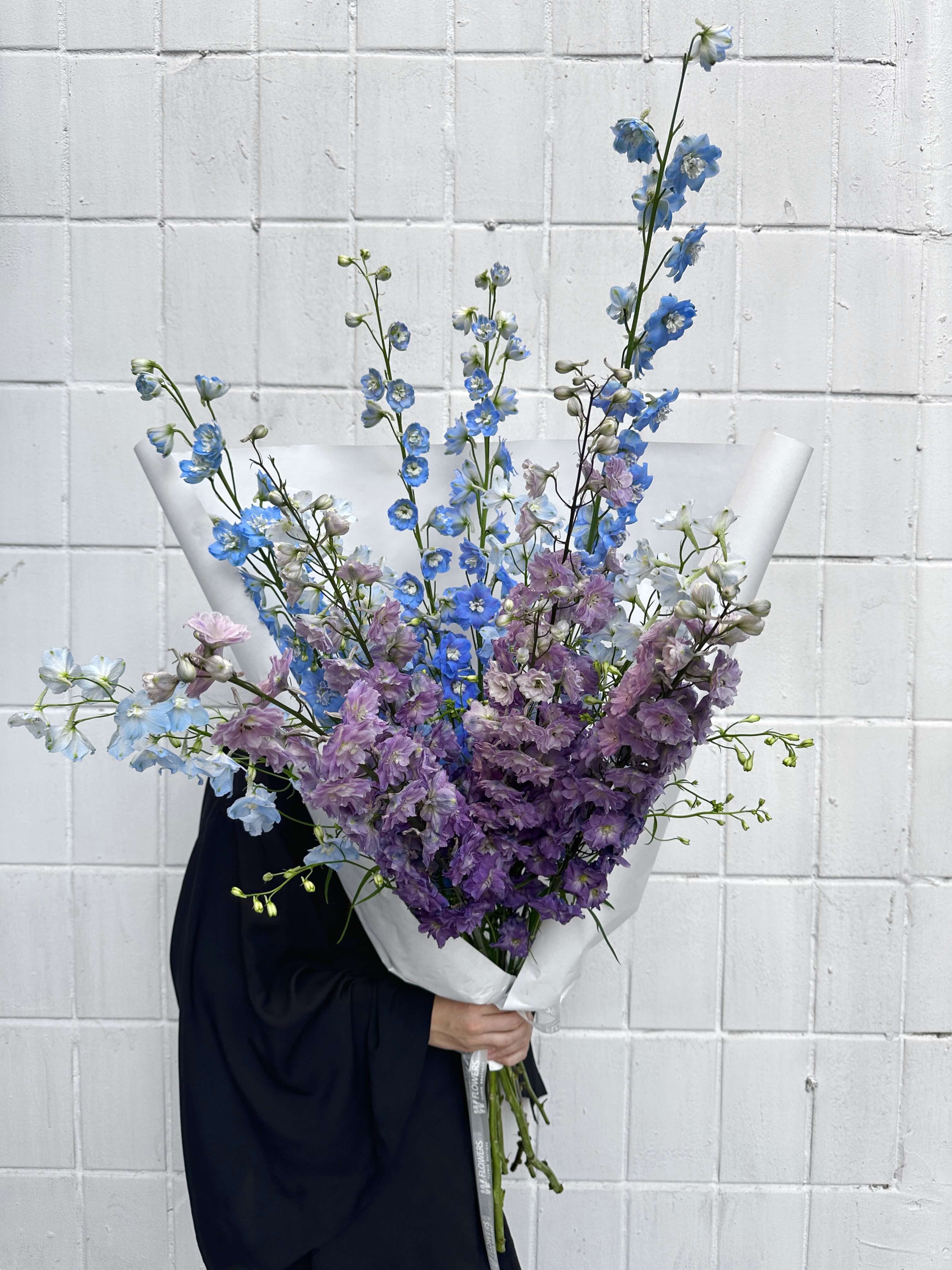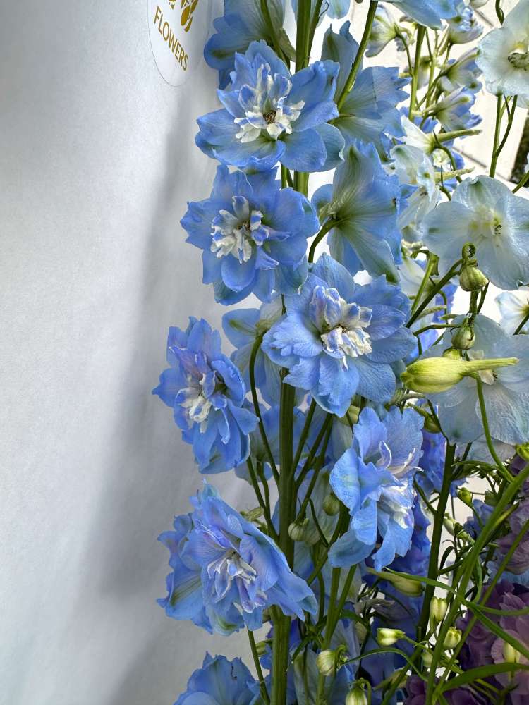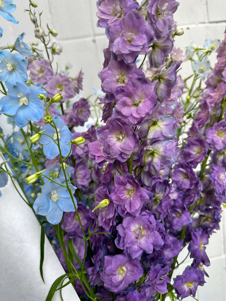 Монобукет из голубого и фиолетового дельфиниума ( на фото букет из 12 шт, также можно приобрести цветок поштучно)