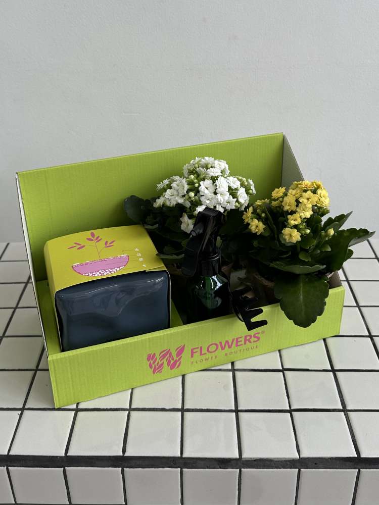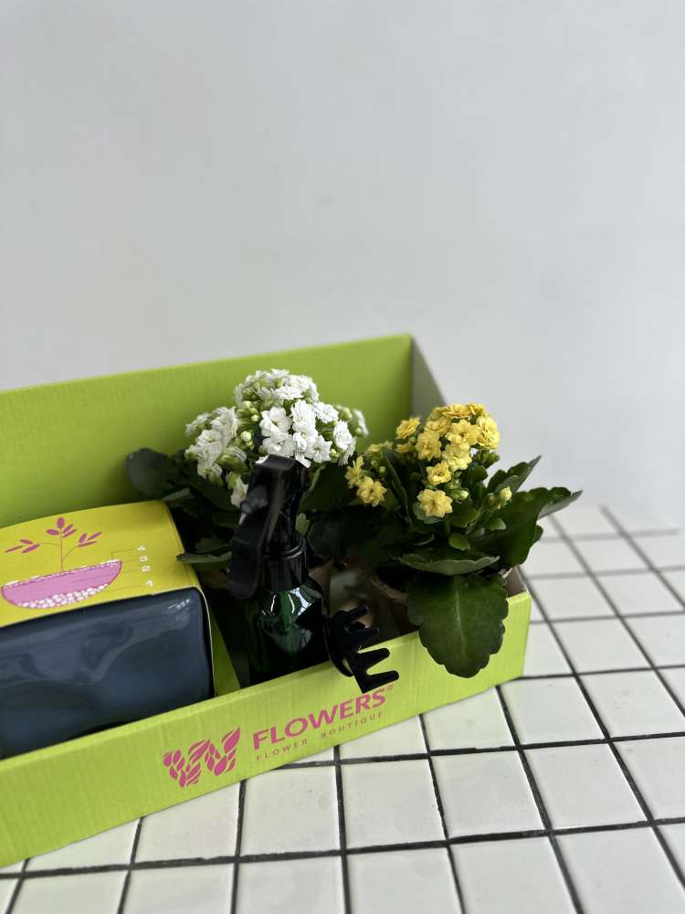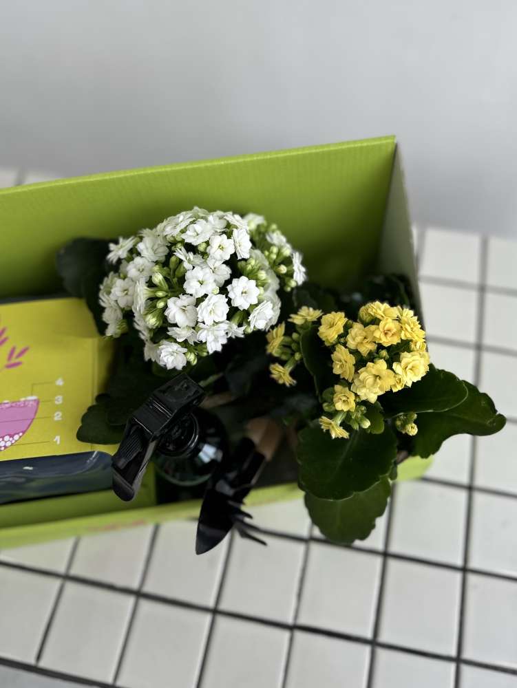 Набор для самостоятельной высадки с цветущими M. Внутри вы найдете все необходимые ингредиенты, чтобы самостоятельно посадить цветочную композицию. На упаковке есть QR-код, который ведет на подробную видеоинструкцию В набор входят: кашпо, дренаж, грунт, декор, грабли и лопатки, пульверизатор, перчатки и растения (каланхоэ маленький - 2 шт) В зависимости от сезона, состав растений может видоизменяться, подробности у флористов при оформлении заказа