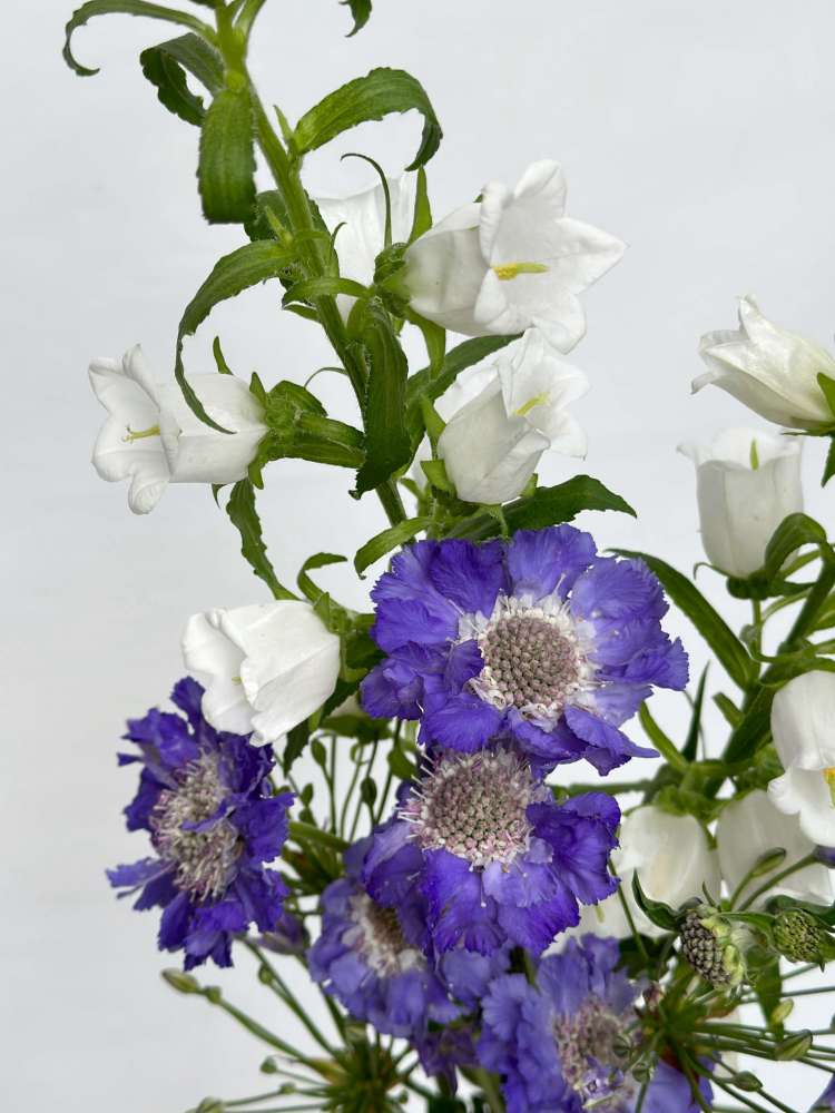 Букет с кампанулой, скабиозой и амарантусом - прекрасный подарок для особенных людей, которым вы хотите передать свою заботу и нежные чувства.